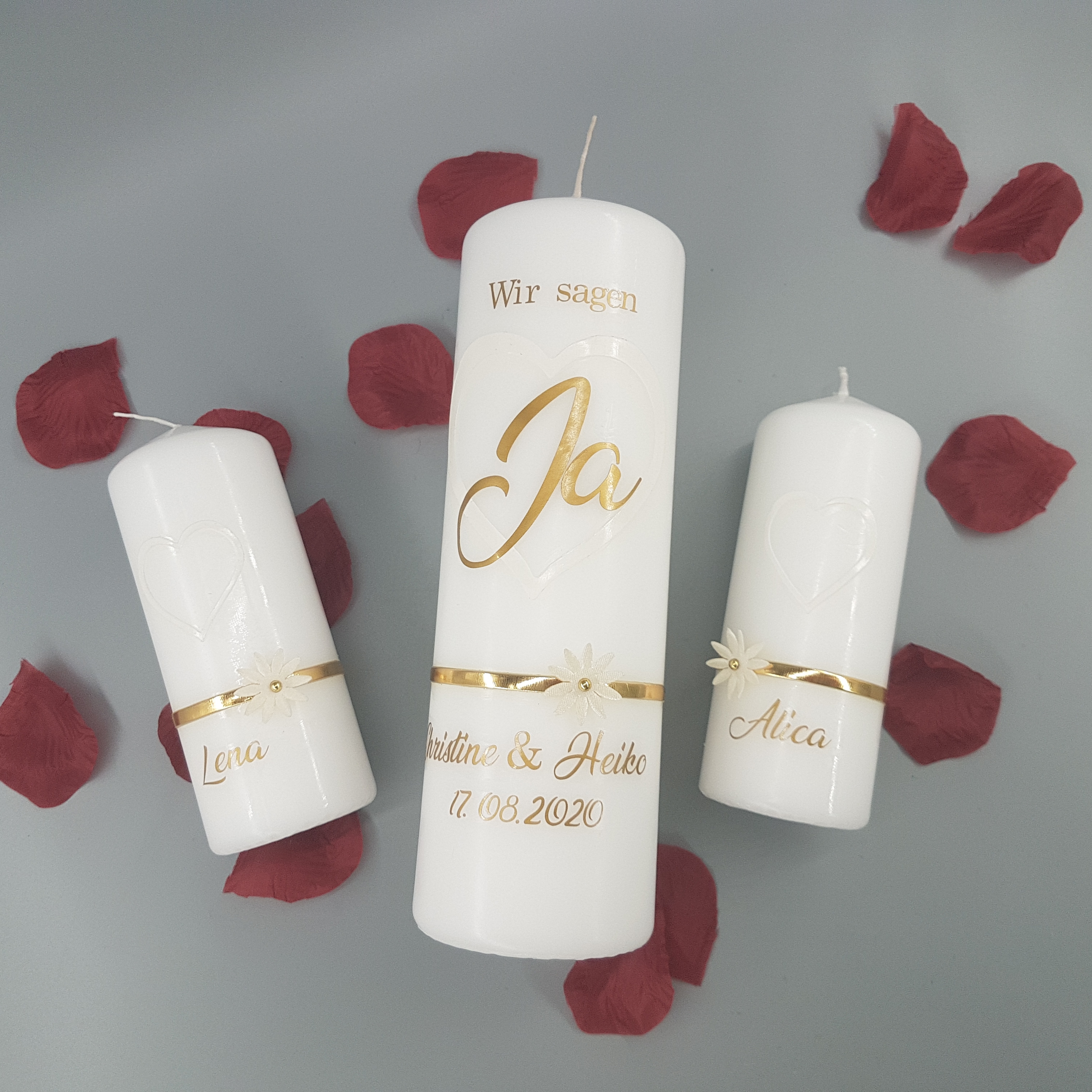 Als Set ist dies eine ideale Kerze falls Kinder in die Trauung mit eingebunden werden sollen.