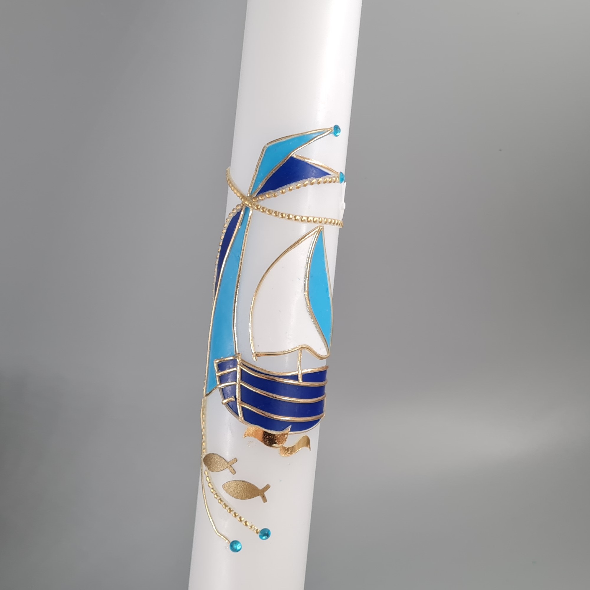 Produktinformationen "Kommunionkerze LINUS blau / gold"